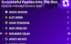 英超第5轮成功传球进禁区榜:桑乔等5名球员各3次,本轮最多 -